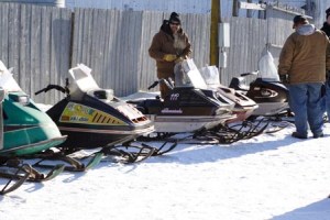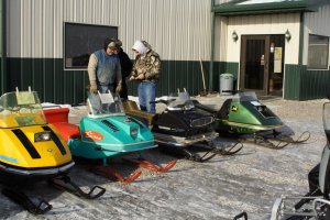 The miniature snowmobilers are often decked out with the latest in racing graphics, and each racer sports a bright orange racing number. Plus, parents line the edge of the racing tracks — some even with heated trailers — for fast help in the racing pits. Personality of the racers show through on the paint and decals on the snowmobile hoods. Some will have Mickey Mouse decals and others will display the same racing style decals and branding as the professionals.