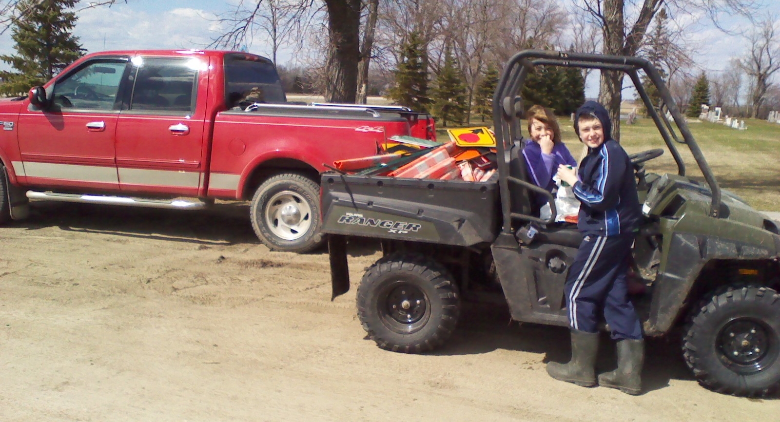Katie and Dillon Strommen (children of Greg Strommen of Fargo) were out recently helping pick up the snowmobile trail signs and put them into storage for the summer months.
