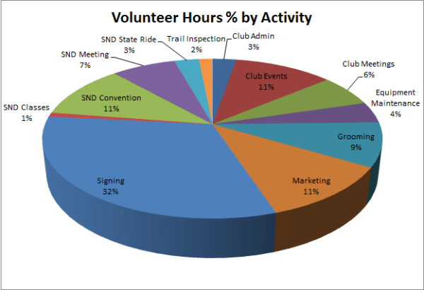 Having an active club helps drive the number up, with club meetings and state convention high in the list, but also note that posting, maintaining and removing trail signs is a significant volunteer effort.