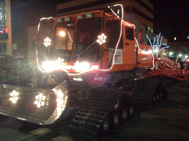 If you made it to the Holiday Light Parade in downtown Fargo tonight, you probably saw the snowmobile trail groomer for the Rural Cass Snowmobile Club, driven by Greg Strommen.